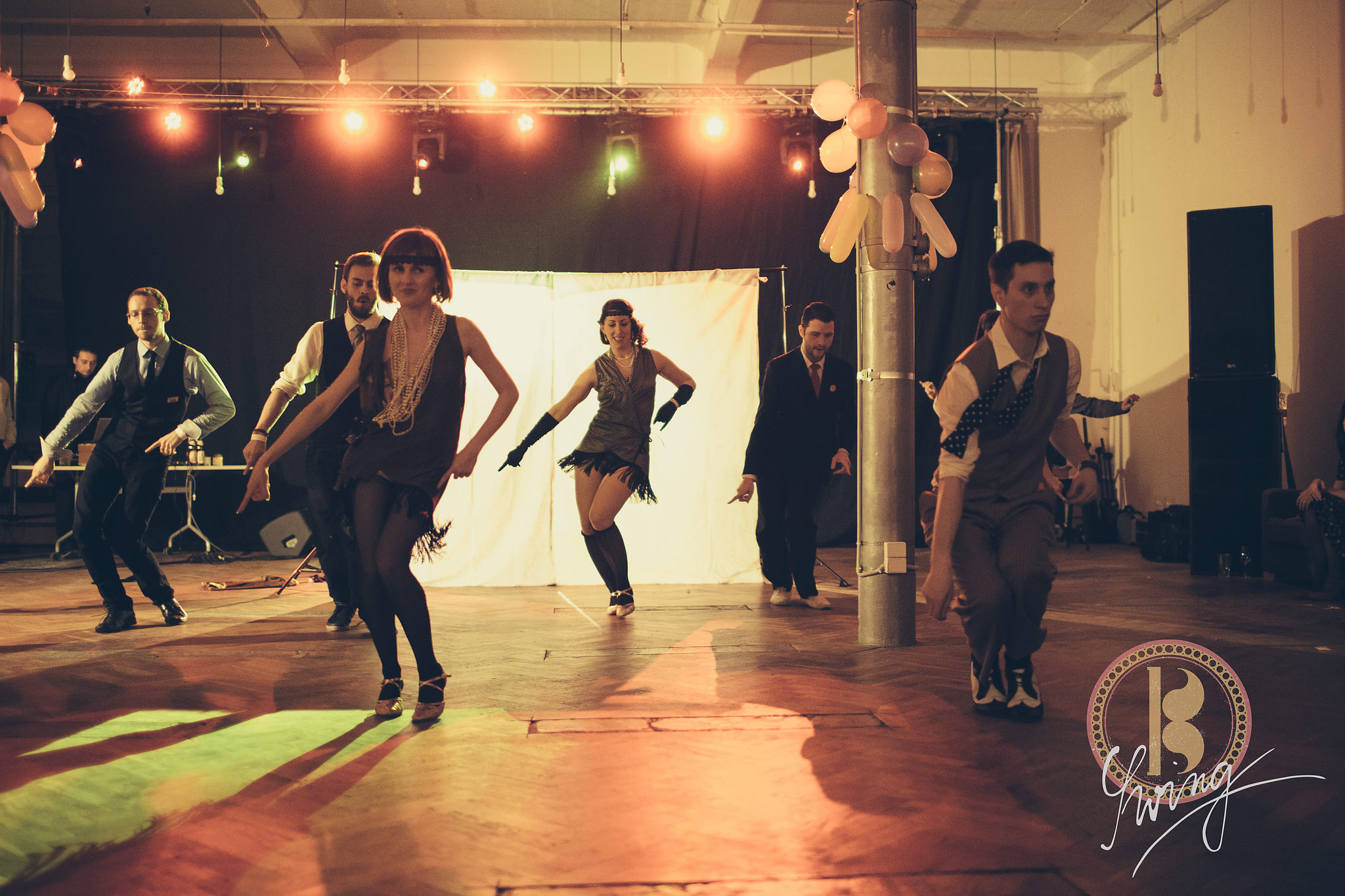 Spomínaná Stell Koščíková, ktorá je lektorkou tancov Charleston a Lindy Hop. Neskôr sa k nám pridali Peťo a Maťka Griačovci, tanečníci Boogie-Woogie, ktorí rok tancovali aj v Amerike. Náš ďalší tanečný pár sú Juro Guldán a Mariett Parráková, rovnako boogiesti. Napokon sa k nám pridal aj tanečník Janči Kubriczký, ktorý učí so Stell Lindy Hop. No a ja sa starám o marketing.