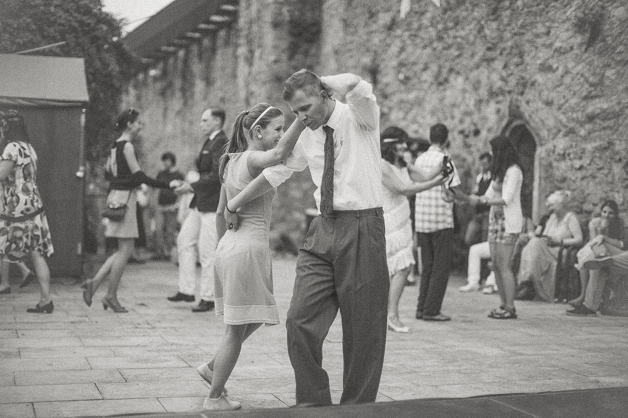 Jedno ide ruka v ruke s druhým. Na našich tančiarňach môžete vidieť našich žiakov, ktorí sa na kurzoch naučili niektorý swingový tanec, na tančiareň prídu dobovo oblečení, z pánov sa stanú gentlemani, ktorí elegantne sprevádzajú svoju dámu. Zabudnete na starosti vonku, na uponáhľanú dobu. Ste proste v inom svete. Nie je to hra na niečo vymyslené. Je úžasné uvedomiť si, že ľudia sa chcú pomyselne vrátiť do určitého obdobia, v ktorom sa aspoň na chvíľu cítia ako doma.