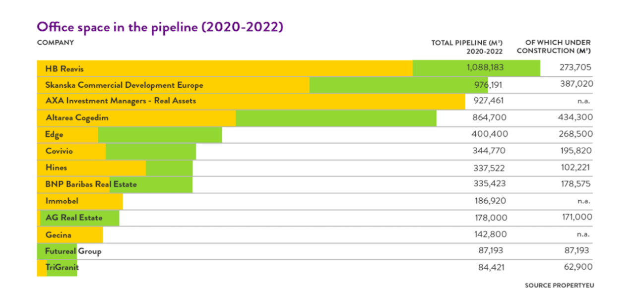 Čísla reprezentujú tak naše plánované, ako aj rozostavané projekty.Spolu je to viac ako 1 milión štvorcových metrov komerčných priestorov v šiestich európskych krajinách, vďaka čomu sme sa stali druhý rok po sebe najväčším poskytovateľom pracovných priestorov v Európskej únii.