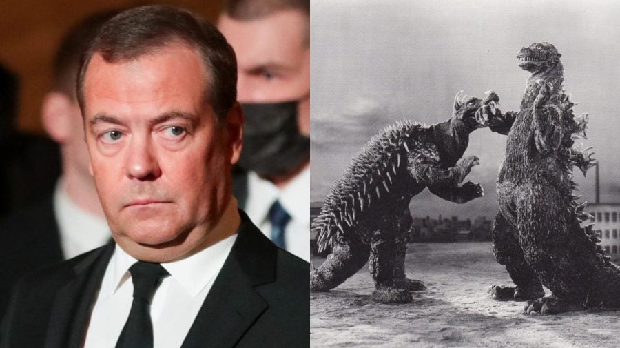 Medvedev akoby sa pomiatol. Na rok 2024 predpovedá mimozemské múmie a korunovanú Godzillu