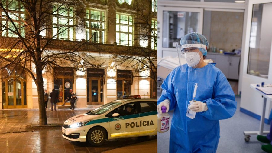 Na snímke policajná hliadka na Hlavnej ulici počas nočného zákazu vychádzania v Košiciach. Zdravotníčka nesie lieky na JIS-ke v nemocnici. TASR/František Iván TASR/AP/Omar Marques
