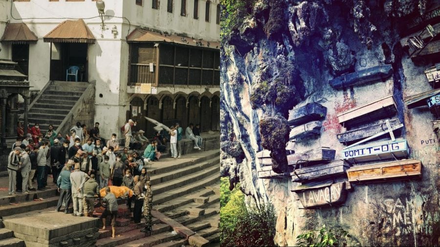 Na severe Filipín, v oblasti pohoria Cordillera, praktizuje kmeň Igorot jedinečný pohrebný rituál, pri ktorom sú rakvy so zosnulými zavesené na strmé úbočia skál alebo umiestnené do jaskýň v útesoch. Táto tradícia, stará viac ako 2000 rokov, vychádza z presvedčenia, že čím bližšie je telo k nebu, tým ľahšie duša dosiahne posmrtný život a predkovia môžu lepšie dohliadať na svojich potomkov.