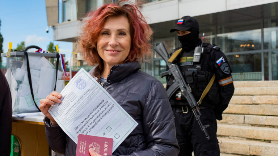 Proruských lídrov podporovaných Kremľom, ktorí organizujú referendá, netrápi ani fakt, že ani jedno územie neovládajú celé. Napríklad v Záporožskej oblasti ruské jednotky nekontrolujú viac ako polovicu regiónu a ani jeho hlavného mesta Záporožia.