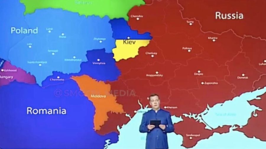Ako totiž píše ruský nezávislý projekt Meduza, Medvedevova mapa dnešnú suverénnu Ukrajinu rozdelila Rusom, ale aj Poliakom, Rumunom či Maďarom. Ukrajinou ako takou ostala len malá oblasť približne o veľkosti Kyjeva.