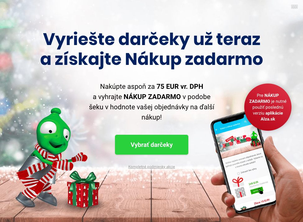 Internetový obchod Alza bol tento rok prvou firmou s vianočnou reklamou, čím predbehol všetkých operátorov. Predvianočnú mániu začal spustením kampane v Októbri. Toto načasovanie však nebolo náhodné. ALza ním chcela upozorniť na to, že darčeky sa oplatí nakupovať v dočasnom predstohu.