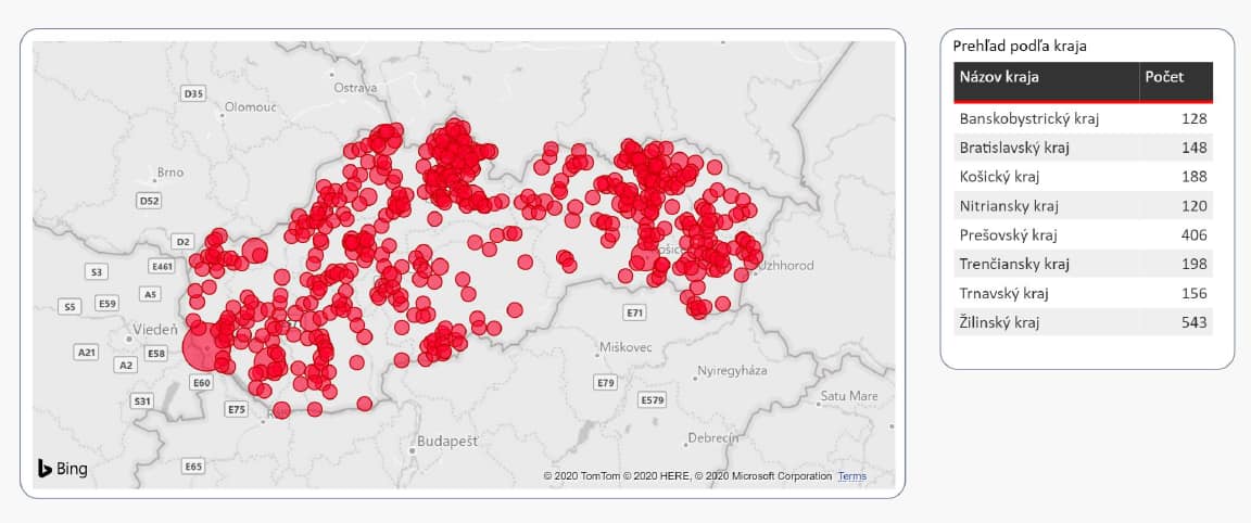 Najviac pozitívne testovaných bolo v Žilinskom kraji (543), v Prešovskom kraji (406), v Trenčianskom kraji (198), v Košickom kraji (188), v Trnavskom kraji (156), v Bratislavskom kraji (148), v Banskobystrickom kraji (128) a v Nitrianskom kraji (120).