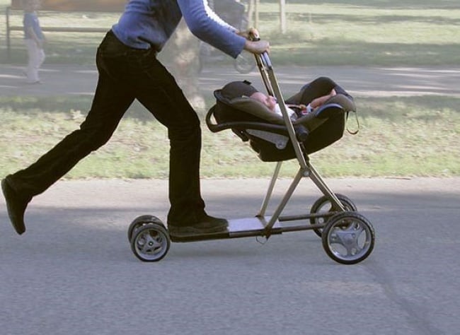 Kočíkovanie nebolo asi ešte nikdy také zábavné (a rýchle) ako s týmto hybridom kolobežky a kočíka.