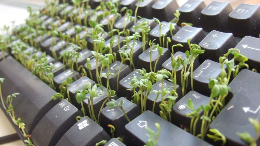 Zasaď mu medzi písmenká na klávesnici rastlinky, cez víkend by mohli vyklíčiť. Vyriešiť to môžeš aj falošnou klávesnicou, ktorú mi nenápadne podsunieš.