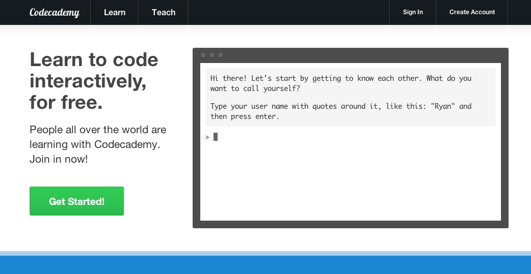 Tento skvelý zdroj ponúka interaktívne kurzy programovania, ktoré ti pomôžu naučiť sa jazyk HTML, CSS, Javascript a PHP. CodeAcademy tiež ponúka možnosť priebežného ukladania cez vlastný účet, ktorý je samozrejme zdarma. Asi nikomu netreba vysvetľovať, aké môže byť programovanie užitočné pre jeho biznis.