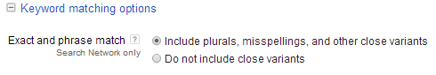 Veľa ľudí, ktorí začínajú s PPC kampaňami tvoria zbytočne komplikované kombinácie a variácie slov. Zbytočne to zaberá čas, pretože Adwords obsahuje funkciu, ktorá automaticky pokrýva aj takéto slová. Funkciu nájdeme na spodku v nastavení kampane.