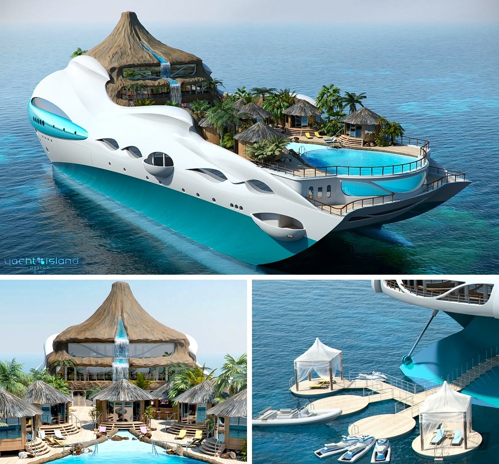 Tento tropický plávajúci ostrov čaká na svoju realizáciu. Zatiaľ je vo fáze projektu, a preto, ak máš zvyšnú miliardu dolárov, tak neváhaj. Môžeš získať rozprávkové prostredie tropickej dedinky s domami, palmami a vlastnou sopkou.
