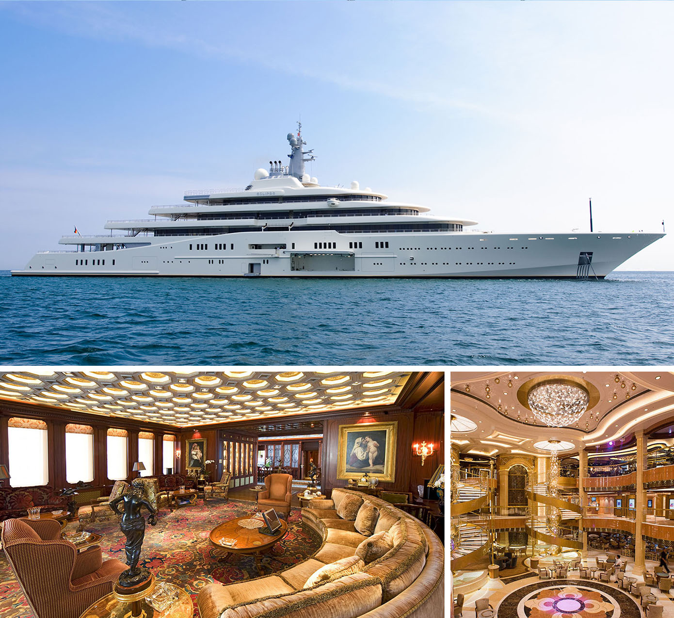 „Eclipse“, teda zatmenie je jednou z najluxusnejších jácht na svete. Stála 1,2 miliardy dolárov a patrí ruskému majiteľovi FC Chelsea: Romanovi Abramovičovi. Mega jachta má koncertnú sálu, kino, vínnu pivnicu a dva bazény, z ktorých jeden môžeš premeniť na tanečný parket. Hostí sem vieš dopraviť 2 vrtuľníkmi, 4 loďami, či 20 skútrami. Ak ťa to všetko omrzí, vyraz na dobrodružstvo 12 miestnou ponorkou, ktorá je súčasťou tohoto luxusu.