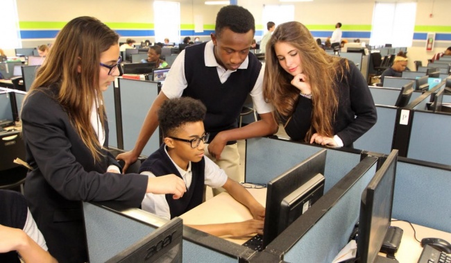 V tejto škole by si klasické triedy hľadal iba márne. Namiesto toho sa vo vnútri školy nachádza jedna obrovská kancelária, do ktorej sa zmestí až 300 študentov. Každý z nich má svoj vlastný počítač, ktorý ho sprevádza jeho individuálnym študijným plánom. Študenti sa teda učia sami, a v prípade otázok sa môžu obrátiť na inštruktorov.