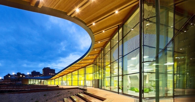 Táto škola je jedna obrovská učebňa, ktorú navštevuje až 1 100 stredoškolákov. Vyučovanie prebieha v rozsiahlej presklenej kocke. V otvorenom priestore sa zasa nachádzajú takzvané „bubny“, teda sekcie, kde si môžu študenti pohodlne posedieť.