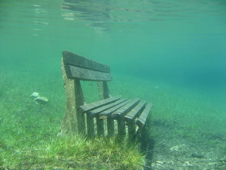 Mandatory Credit: Photo by REX/Marc Henauer/Solent News (3010613d) A scuba diver explores the flooded park around Green Lake Green Lake, which doubles in size and covers a park at certain times of the year, Tragoess, Austria - 2013 *Full story: http://www.rexfeatures.com/nanolink/mjhf These photographs appear to show a spectacular underwater world. Twelve metres of water covers trees, footpaths, benches and bridges that are only accessible at certain times of the year. During the winter Green Lake in Tragoess, Austria, is normally only one metre deep and visitors can stroll through the park next to the picturesque lagoon. However, at certain times of the year snowmelt from the nearby Karst mountains floods the lake and everything surrounding it. At this point an extra 12 metres of water, which is crystal clear and with a temeprature of seven degree celsius, helps to double the size of Green Lake from 2,000 square metres to 4,000. Marc Henauer, from Perly, Switzerland, and his wife travelled with their scuba diving gear to explore the flooded park. The 39-year-old said: "When I was underwater, it felt like I was swimming in a magical world, it was so beautiful.