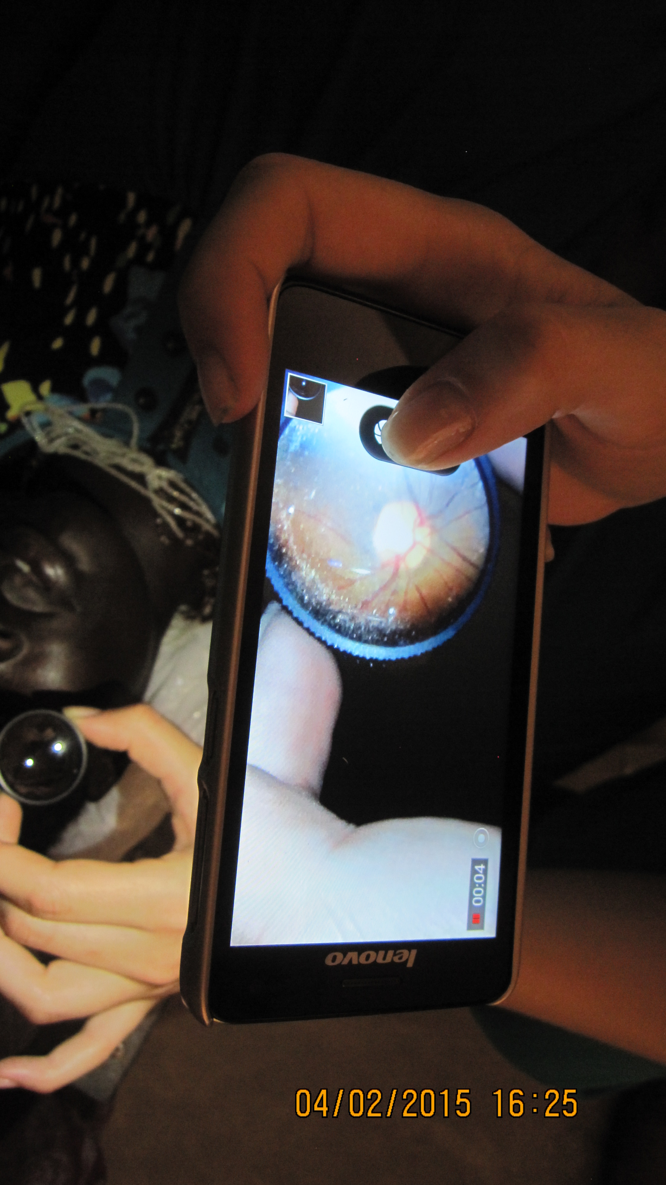 Okrem inej práce v nemocnici sme vyšetrovali zrakovú ostrosť pacientov pomocou nástennej papierovej formy Snellenových optotypov s obrázkami pre analfabetov a po prvý raz sme na skríning očného pozadia používali oftalmoskop a smartfón s Volkovou šošovkou. Podla výsledku vyšetrenia potom dostal pacient okuliare z našej zbierky aké potreboval.