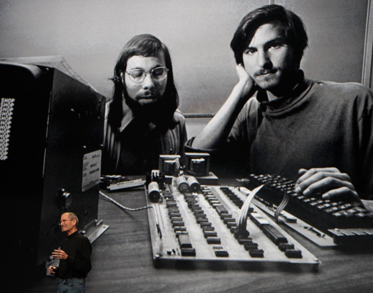 Začiatky Applu boli tvrdé. Firmu budovali 3 mladí chalani (Stewe Wozniak,Steve Jobs,Ronald Wayne) v garáži v americkom Los Altos. V tej dobe to bola firma zápasiaca s IBM a raketovým úspechom Microsoftu, ktorý takmer predznamenal ich koniec.