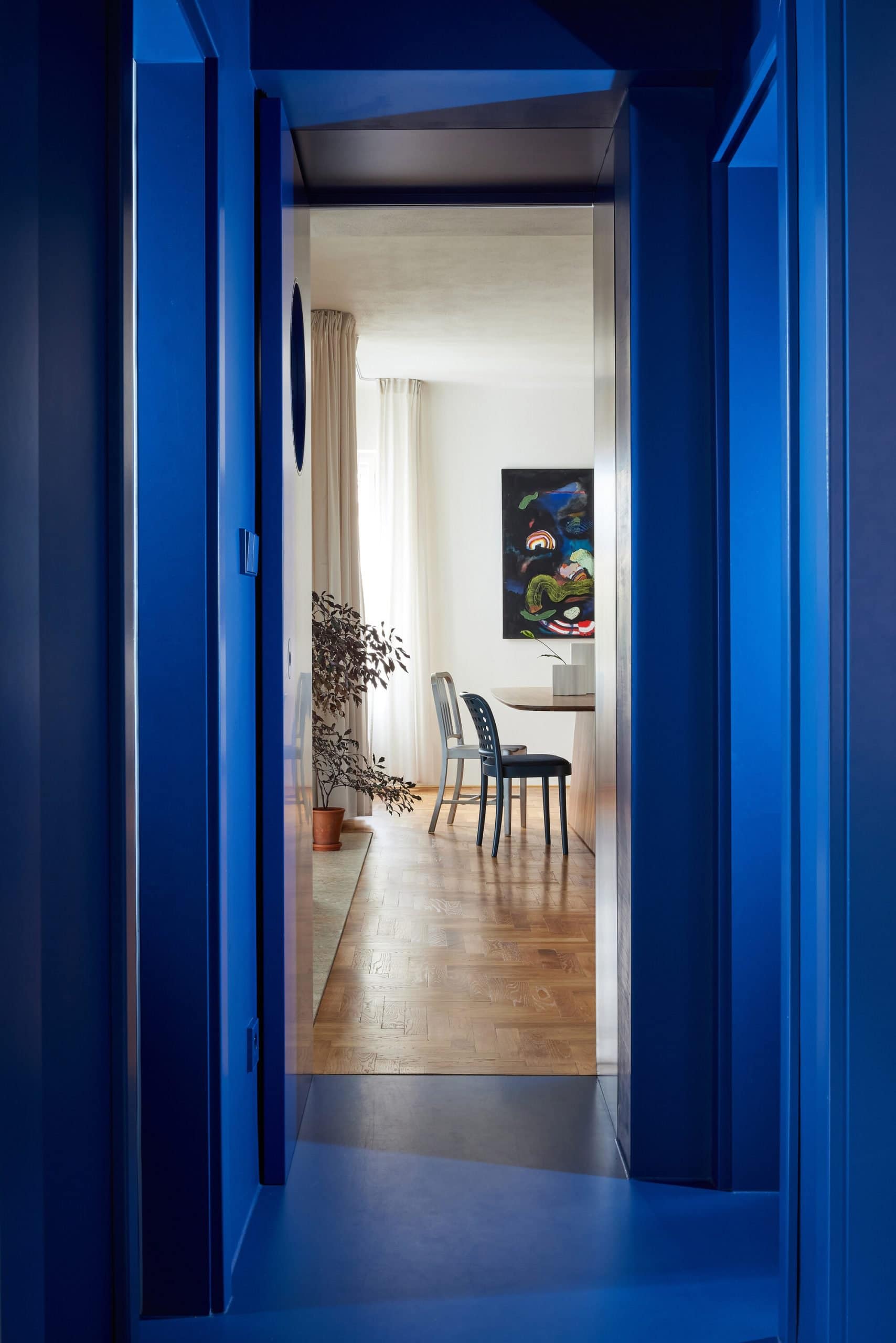 „Celý byt potom umožňuje zažívať rôzne svetelné situácie vďaka skutočnosti, že má svetlo prístup do bytu zo všetkých svetových strán a rôznymi spôsobmi – zaguľateným pásovým oknom do ulice, oknom zalomeným cez roh vnútrobloku, obyčajným plochým oknom aj sprostredkovane cez sériu niekoľkých okien. To sú danosti rohového domu a architektúry z 30. rokov, tento fakt sme sa snažili iba posilniť a doslova nezamurovať.“