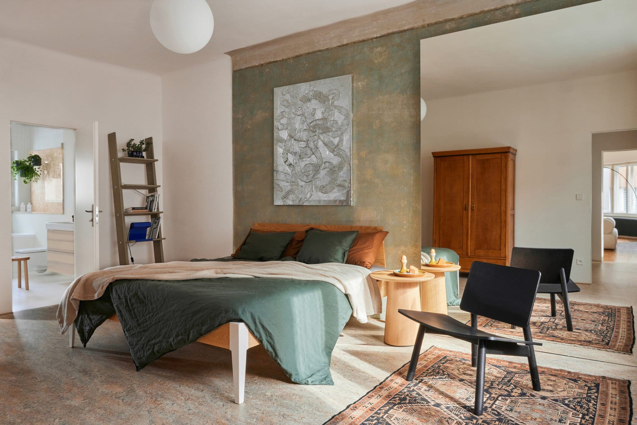 Fakt, že spoluautori návrhu vedú toto oceňované dizajnérske štúdio, sa potom prejavil na precíznom výbere interiérového vybavenia i materiálov. Byt rozjasňujú sýte farby a je vybavený aj autorským nábytkom z produkcie ich značky MCDJ.
