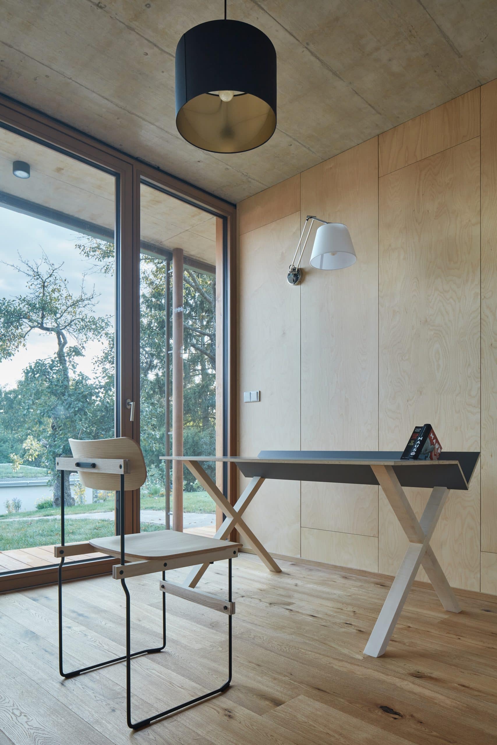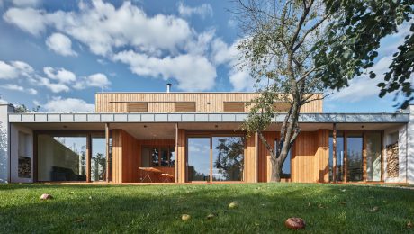 Ich výtvorom je nový dom postavený uprostred starej záhrady, ktorý sa otvára južnému slnku a nádherným výhľadom na kopce Brdského masívu. Je navrhnutý pre štvorčlennú rodinu so spoločenskými priestormi a zázemím rodičov na prízemí. Deti tu majú samostatné poschodie s vlastnou strešnou záhradou a spoločnou halou.