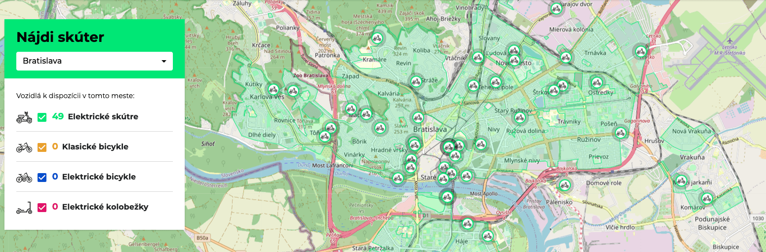 - vyše 60 eSkútrov rozmiestnených po Bratislave, čoskoro ich bude vyše 100 s expanziou do iných miest