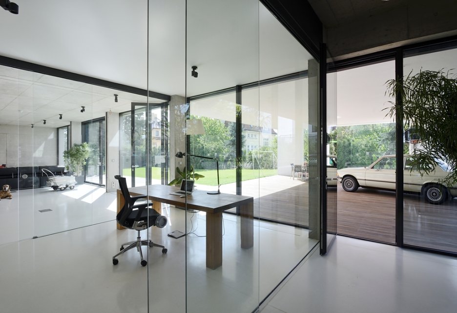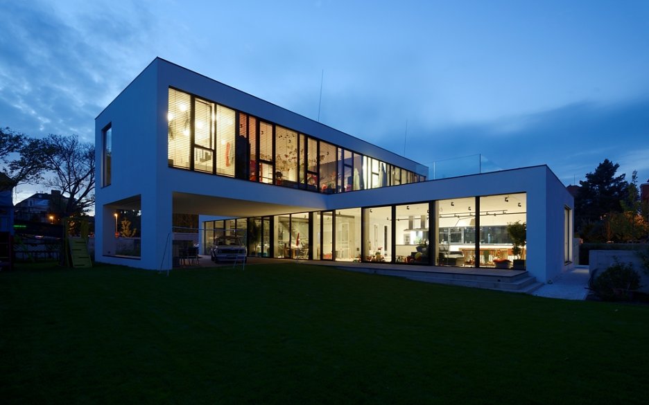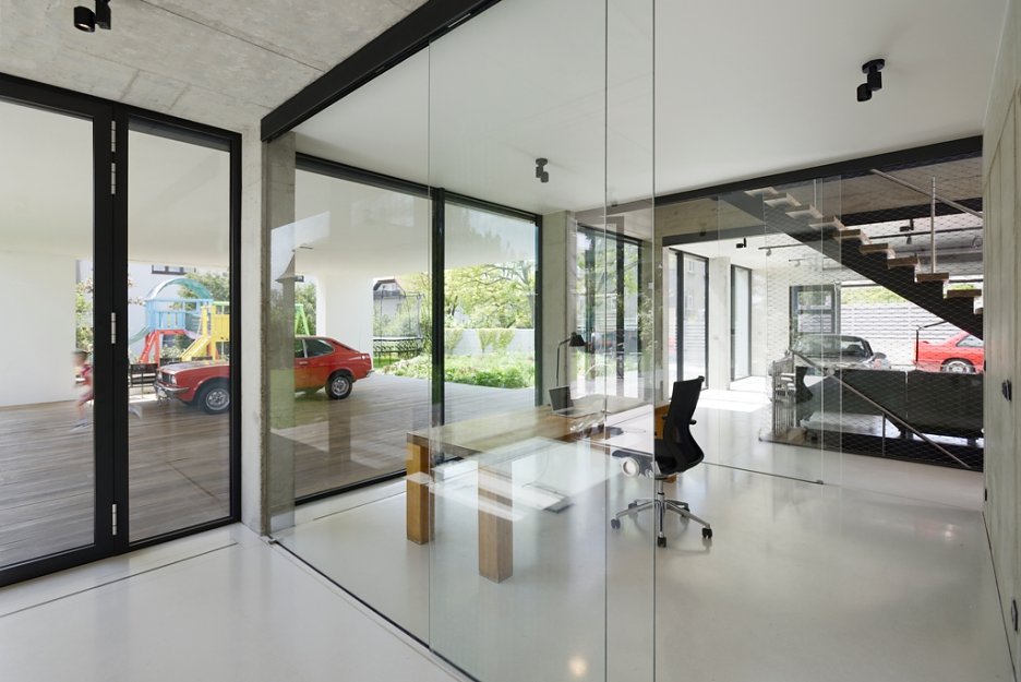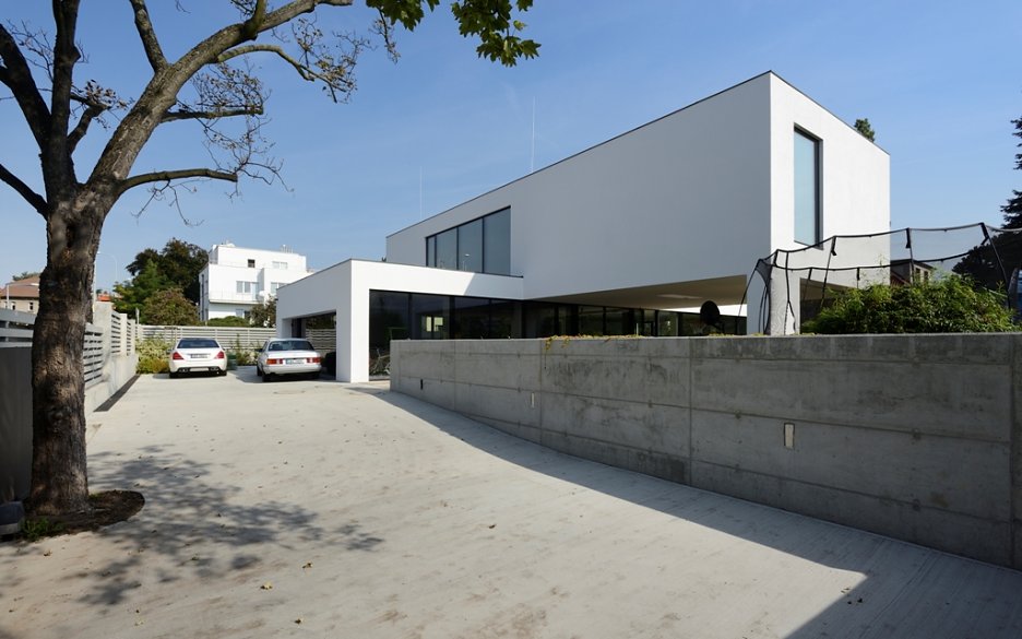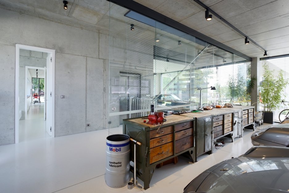 Pražská vila je obrazom životnej náplne investora, ktorou sa mu okrem rodiny stali autá. Rozľahlé prízemie pripomína autosalón a autom je možné vojsť takmer až do kuchyne. V podstate ide o bývanie v luxusnej garáži.