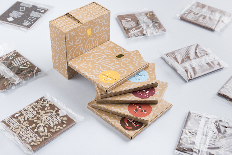 Obalový dizajn pre kolekciu slovenských čokolád navrhol Michal Slovák. Kolekcia NAŠA však pomocou obalov odkazuje aj na spoluprácu so slovenskými farmármi. Forma rozdelená na 8 častí predstavuje 8 krajov, každý so svojským tvarom a popisom v lokálnom nárečí. Ručnú výrobu zvýrazňuje aj kraftový papier a využitie nálepiek. Práve nálepky originálne popisujú použité ingrediencie, ako napríklad mak, čili, ľan alebo tekvicu. Pripojené sú aj moderne spracované folklórne ornamenty.