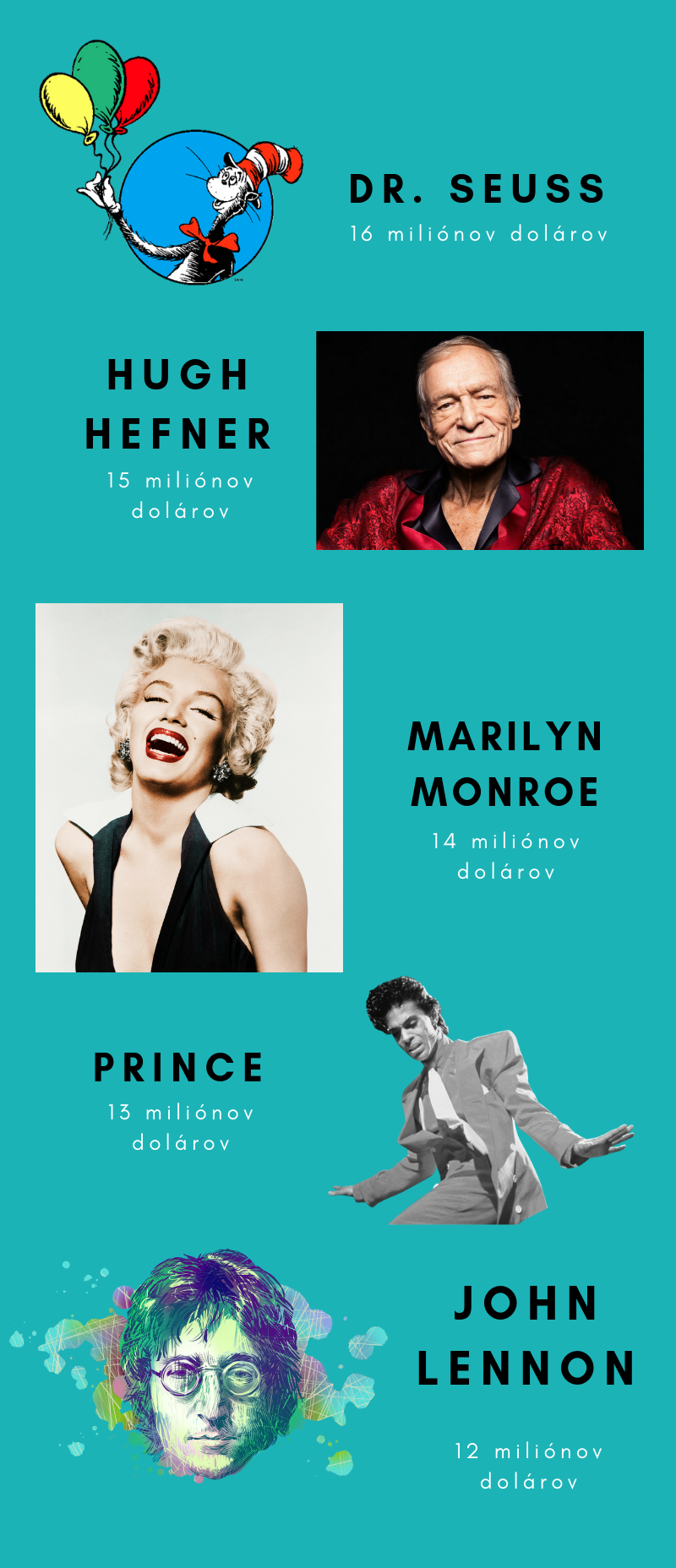 - Magazín Forbes každoročne prichádza s rebríčkom najlepšie zarábajúcich celebrít, ktoré už nie sú medzi nami