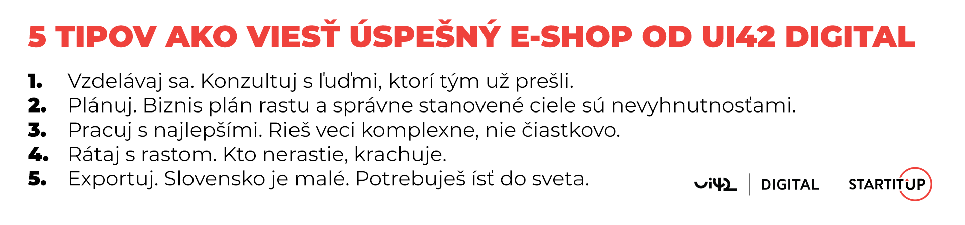 Z vlastnej skúsenosti to vedia aj majitelia ui42 Digital, zameraného na podporu rastu e-shopov: „Asi 50 % e-shopov si nerobí biznis plány, celý čas žijú v domnení, že im všetko funguje a na konci roka objavia, že sú v strate,“ približuje svoje skúsenosti Vladimír Nociar, spolumajiteľ ui42 Digital a e-shop stratég.