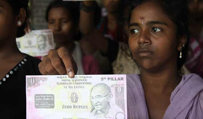 Akonáhle niekto bežnému občanovi naznačí, že by mal za štandardné bezplatné služby ponúknuť úplatok, použije dotyčný namiesto skutočných peňazí bankovku s nulovou hodnotou. Protikorupčné platidlo navyše zdobí portrét Gándhího s textom „Sľubujem, že neprijmem ani nepredám úplatok“.