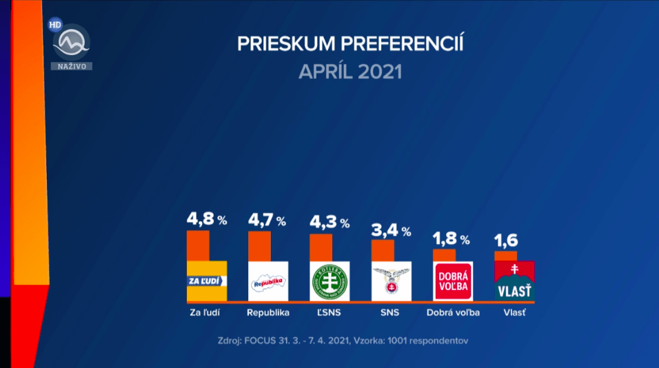 Pred bránami parlamentu by zostali strany Za Ľudí, Republika, ĽSNS, SNS, Dobrá Voľba a Vlasť.