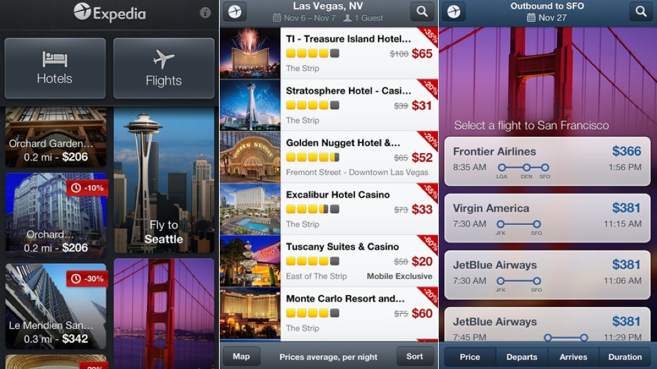 Expedia bola dlho známa ako stránka na bookovanie a vyhľadávanie dovoleniek a informácií o cestovaní. Jej mobilná aplikácia je však trochu iná. Môžeš cez ňu natrafiť na exkluzívne zľavy last-minute ubytovaní, môžeš si objednať prenájom auta a vyhľadávať aktivity v destinácii, v ktorej sa nachádzaš.