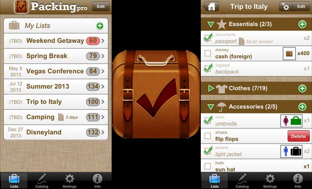 Packing Pro je jediná z aplikácií v tomto článku, ktorá je platená. Stojí 2,99$ a je vytvorená na písanie si zoznamu. Pomôže ti pamätať si, čo si máš zabaliť a takisto si značí, čo už zabalené máš. Skvelo poslúži aj ako dôkaz toho, čo si mal zabalené, pokiaľ by sa ti stratila batožina. Ponúka rôzne typy zoznamov podľa toho kam a ako cestuješ alebo si môžeš tvoriť vlastný zoznam potrebných vecí.
