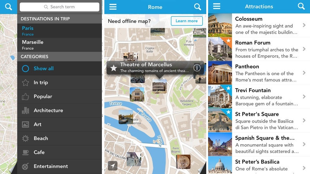 Tripomatic ti pomôže naplánovať čo chceš na dovolenke robiť a čo chceš vidieť. Vieš si vytvoriť denné plány od miest, ktoré je možné v okolí destinácie navštíviť, po kaviarne či reštaurácie. Tripomatic eviduje viac než tisícky atrakcií v stovkách destinácií. Aplikácia je prepojená s tripomatic.com, takže si vieš svoje plány pozrieť aj na veľkom monitore. Mnohé destinácie ponúkajú aj offline obsah ako mapy, fotky a sprievodcov.