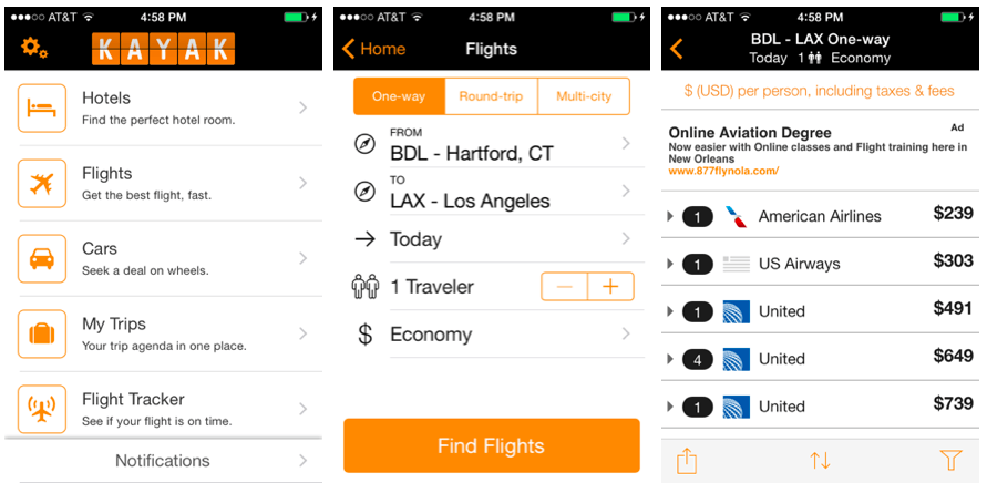 Webstránka Kayak.com ponúka jedny z najlepších služieb v oblasti leteniek. Hlavne ak potrebuješ vedieť hneď všetky detaily letu. Staré časy, kedy bol Kayak.com iba na vyhľadávanie letov sú už preč. Teraz si môžeš predplatiť lety, hotely aj prenájom auta. Ako doplnok ponúka služby ako Orbitz a Priceline, aby si si mohol overiť, či objednávaš naozaj najvýhodnejšie.