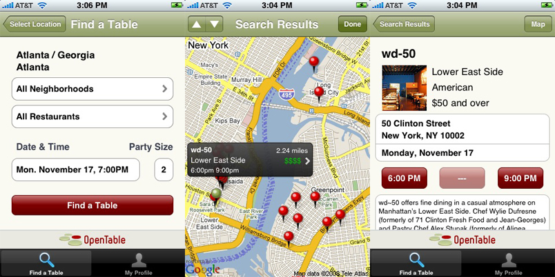 OpenTable funguje najmä vo veľkých mestách v USA, v Kanade ale aj v Londýne. Pomôže ti nájsť reštaurácie, ktoré vyhovujú tvojim kritériám, ukáže ti otváracie hodiny, recenzie a môžeš priamo urobiť aj rezerváciu. Vie ti uľahčiť rozhodovanie hlavne ak cestuješ po cudzích mestách.