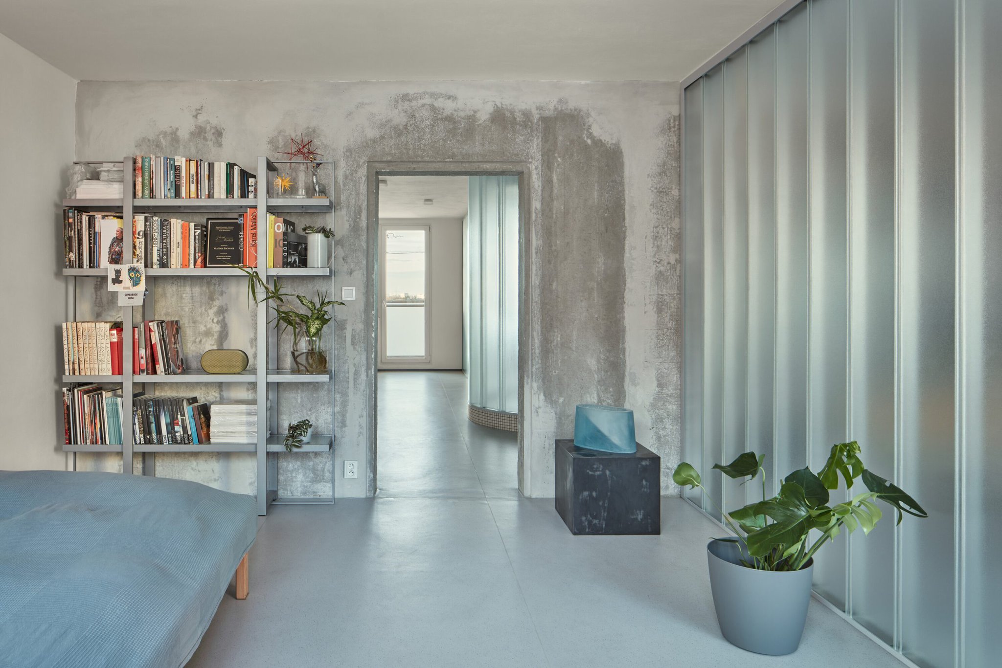„Sochár a sklár Vladimír Bachorík vo svojom byte na sídlisku vždy pracoval – preto si v rámci totálnej rekonštrukcie prial navrhnúť aj sklársku dielňu. Čo si naopak neželal, boli dvere. Neobvyklé zadanie má cenný potenciál generovať neobvyklé riešenia, čo sme sa rozhodli využiť na experiment: aké sú maximálne možnosti klasického panelákového bytu? Ako ďaleko sa dá zájsť? Naším cieľom bolo využiť hybridnú typológiu a dosiahnuť čo najvyššiu mieru slobody, svetla a veľkorysosti,“ uvádzajú architekti.
