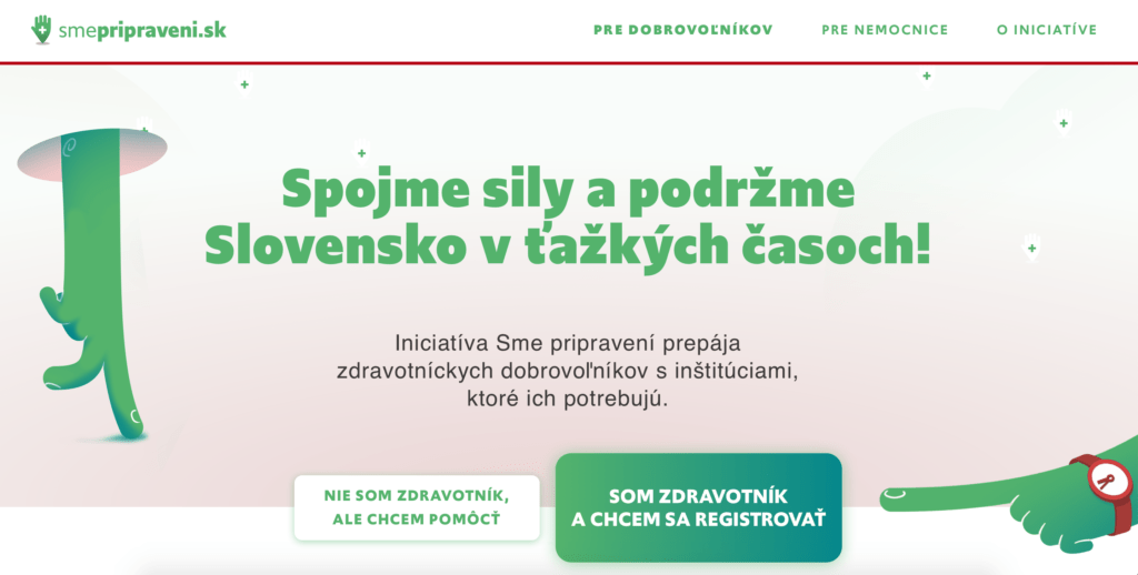 „Vedeli sme, že nemocnice budú potrebovať pomôcť. Tak sme sa rozhodli začať prepájať dobrovoľníkov so zdravotníckym vzdelaním s nemocnicami a ďalšími zdravotníckymi inštitúciami.“ Prostredníctvom platformy Solved Together sa mohli nahlasovať dobrovoľníci, ktorí mali čas, a nemocnice, ktoré potrebovali pomôcť. „V súčasnosti je na smepripraveni.sk registrovaných viac ako 1300 dobrovoľníkov a 55 inštitúcií. Aj vďaka tomuto riešeniu sme pomohli nemocniciam lepšie zvládnuť nedávnu náročnú situáciu.“