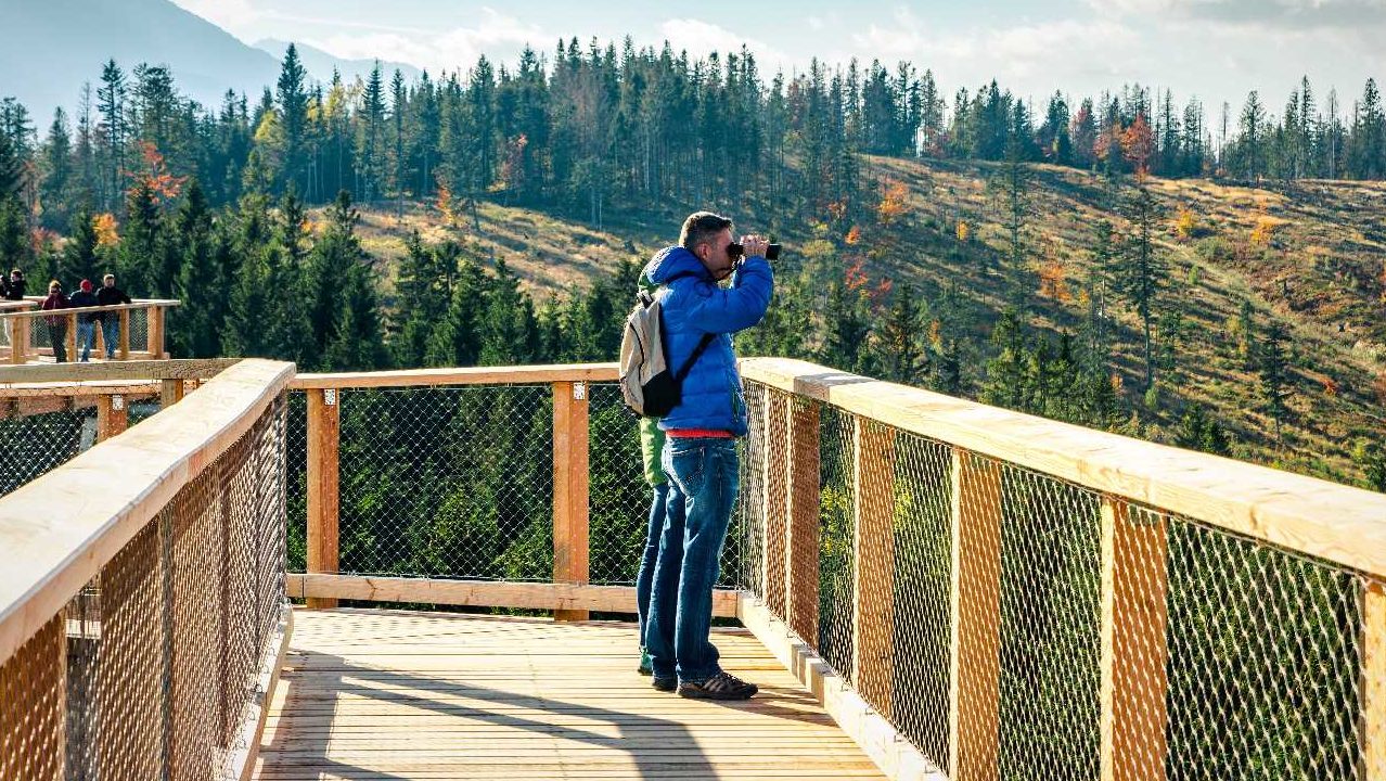 Určite si už o nej počul. Vyhliadka sa nachádza v Pieninskom parku Spišskej Magury. Výhľad si užiješ prechádzkou po 600 m dlhom drevenom chodníku v korunách stromov, ktorého záverom je 32-metrov vysoká veža, z ktorej uvidíš Zamagurie, Pieniny aj Belianske Tatry.