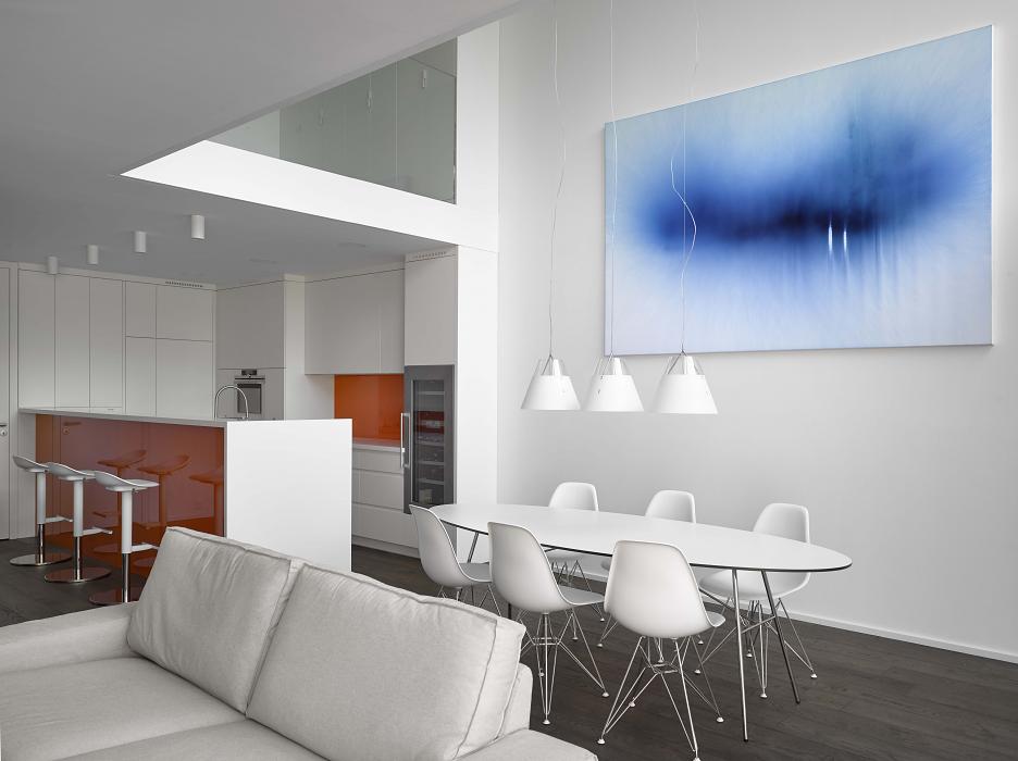 Pôvodná bytová jednotka získala prestavbou novú kvalitu. Obytná plocha sa rozšírila o priestor suterénu, ktorý je teraz priamo prepojený so záhradou. Úzka dispozícia a nízke svetlé výšky motivovali architektov k otvoreniu priestoru cez dve podlažia.