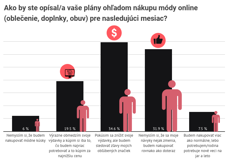 Zníženie návštevnosti deklaruje 43 % e-shopov s módou na Slovensku, 29 % e-shopov zároveň zaznamenalo zvýšenú interakciu užívateľov s ich obsahom na sociálnych sieťach. V reakcii na koronavírusovú situáciu e-shopy znižovali budgety, pozastavovali spolupráce s externými agentúrami a freelancermi, znižovali platy a niektoré z nich aj prepúšťali.
