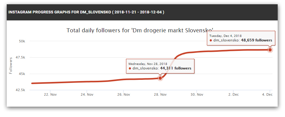 Prvou súťažou sa nám podarilo počas 5 dní zasiahnuť 54 566 ľudí a zvýšiť počet sledovateľov Instagramu @dm_slovensko o viac ako 4 000 ľudí. V priebehu 5 mesiacov, počas ktorých sme publikovali 7 súťaží sa zvýšil počet sledovateľov Instagramu @dm_slovensko až o 16 tisíc a dosah všetkých postov spolu bol viac ako 500 tisíc.