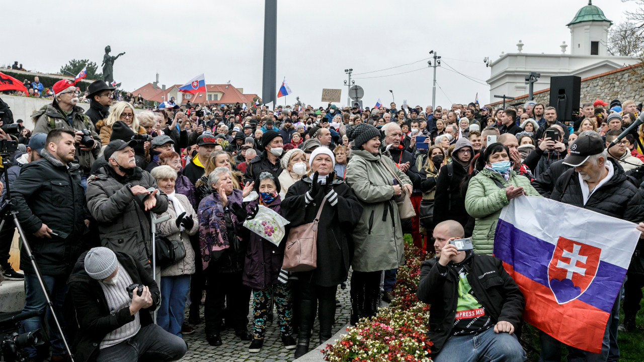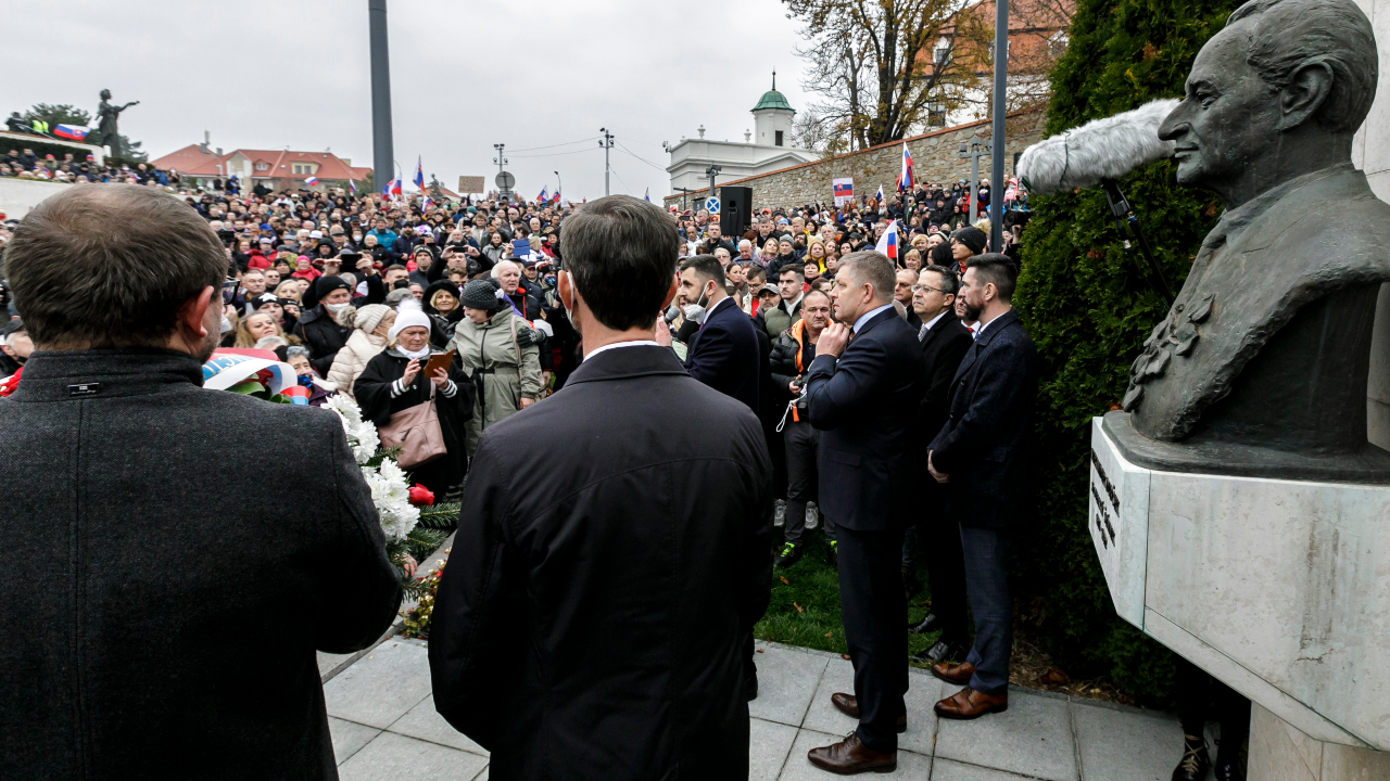 Podotkol, že občania sú nahnevaní a stúpa agresivita. Na riešenie by však podľa neho stačilo prijímať rozumné opatrenia na boj s pandémiou. Kritizoval vládu aj pre neriešenie zdražovania. Nevylúčil opätovný zber podpisov pod referendum za predčasné voľby. „Nech žije Dubček! Nech žije Slovensko! Za predčasné parlamentné voľby!“ ukončil prejav.