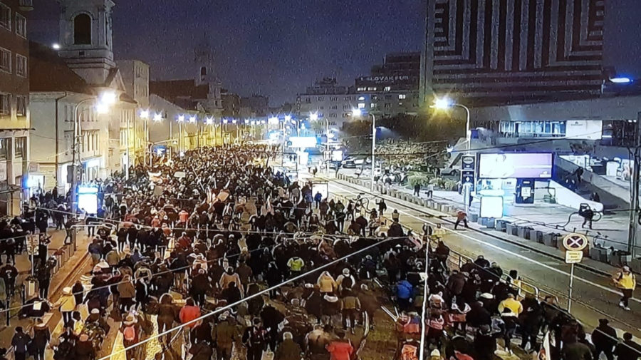 Dav protestujúcich zablokoval dopravu v Bratislave. Prerušená je aj premávka MHD