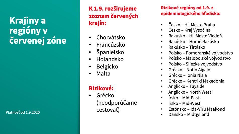 Minister zdravotníctva Marek Krajčí upozornil, aby sa dovolenkári vrátili z týchto krajín domov pred 1. septembrom 2020. Po tomto dátume ich totiž všetkých bude čakať desaťdňová karanténa. Pôvodne bola karanténa pre červené krajiny 14 dní.