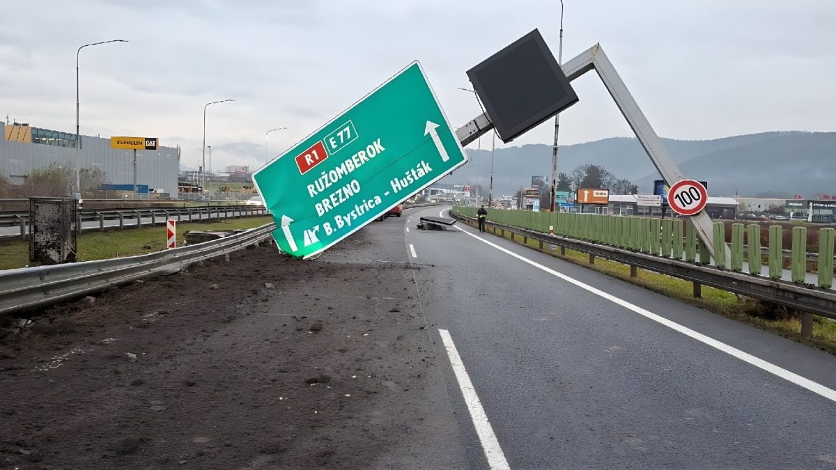 - Havária kamióna spôsobila uzávierku rýchlostnej cesty R1 pred Banskou Bystricou, keď spadol portál so značkou a zatarasil vozovku