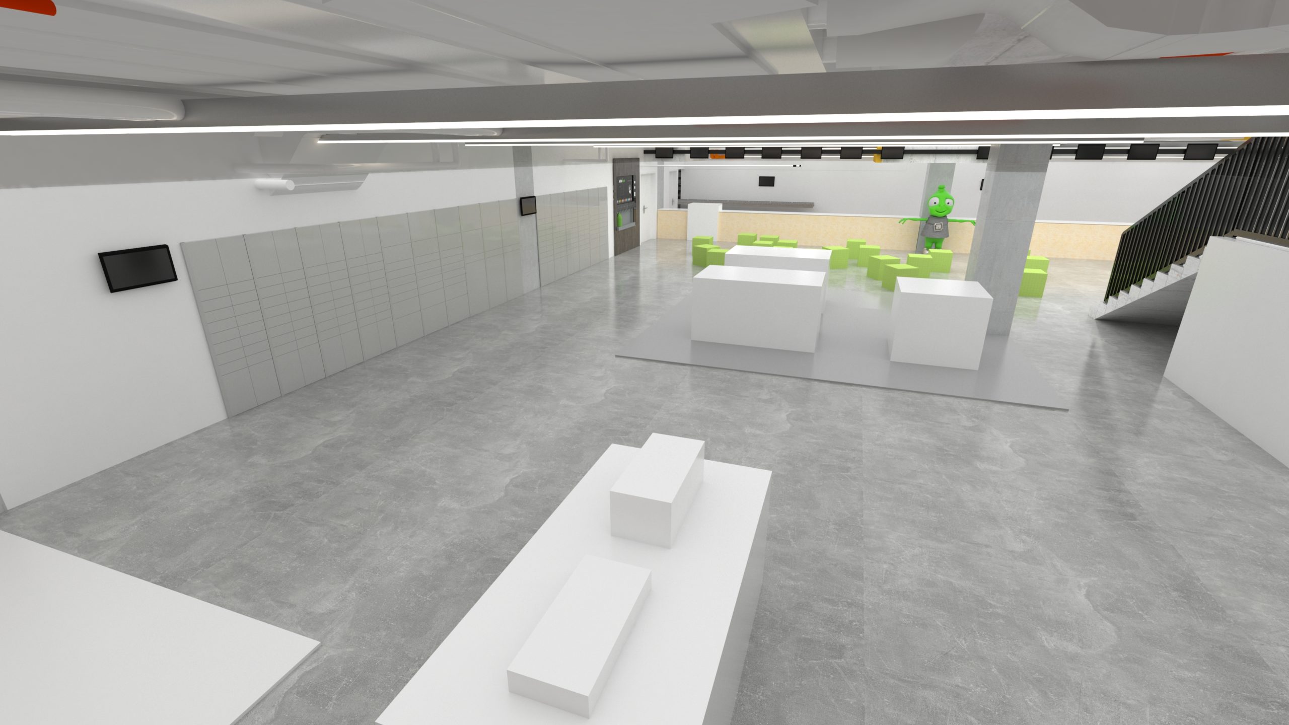 Ústrednému priestoru, ktorý bude časom slúžiť na stretávanie väčších skupín zamestnancov a hromadné prezentácie, dominuje kaviareň. Tá poskytuje priestor na neformálne schôdzky zamestnancov aj ich hostí.