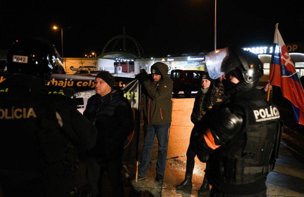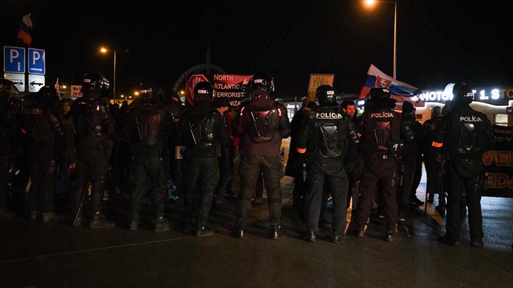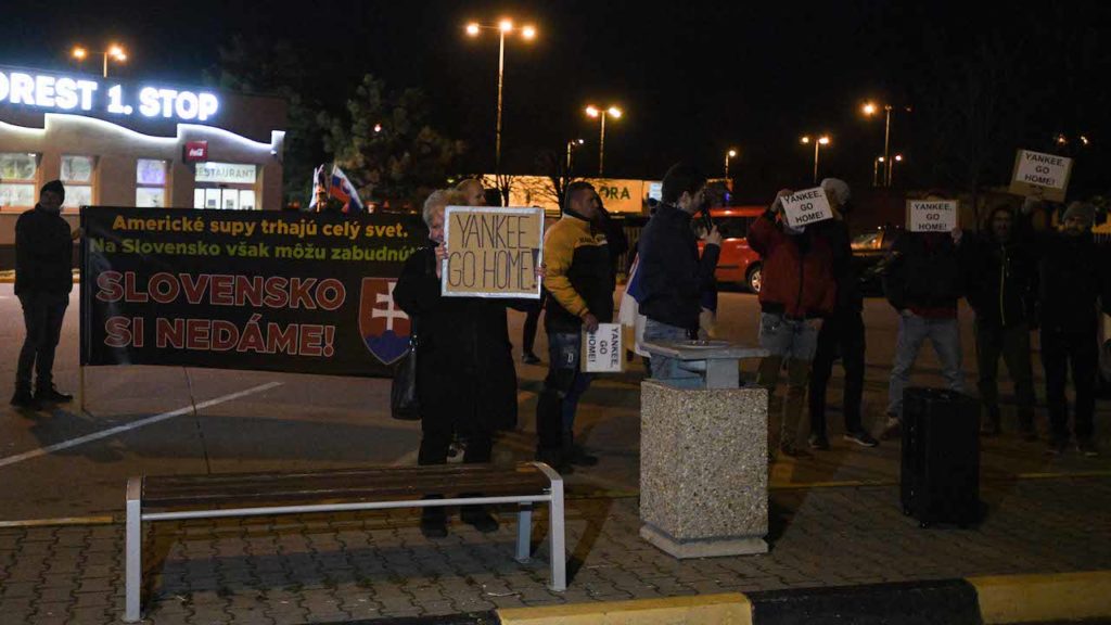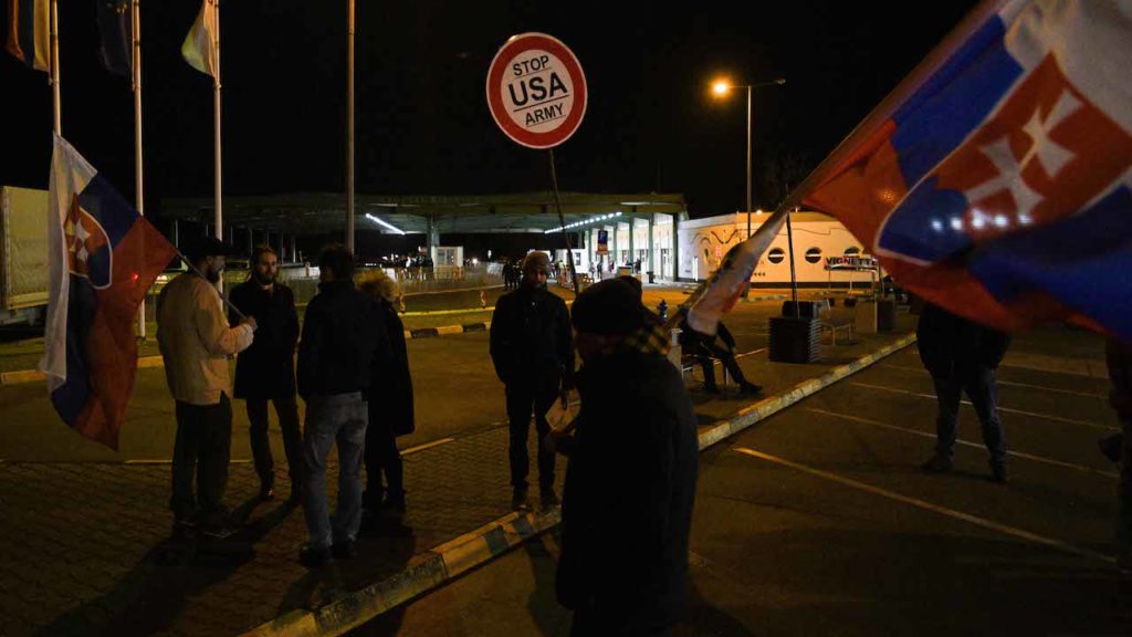 Na hraničnom prechode Brodské však na americký konvoj čakali protestujúci, uvádza TV Markíza. Tí protestovali proti prítomnosti amerických vojakov na území Slovenska, viacerí z nich mali transparenty s nápismi: „Yankee go home!“