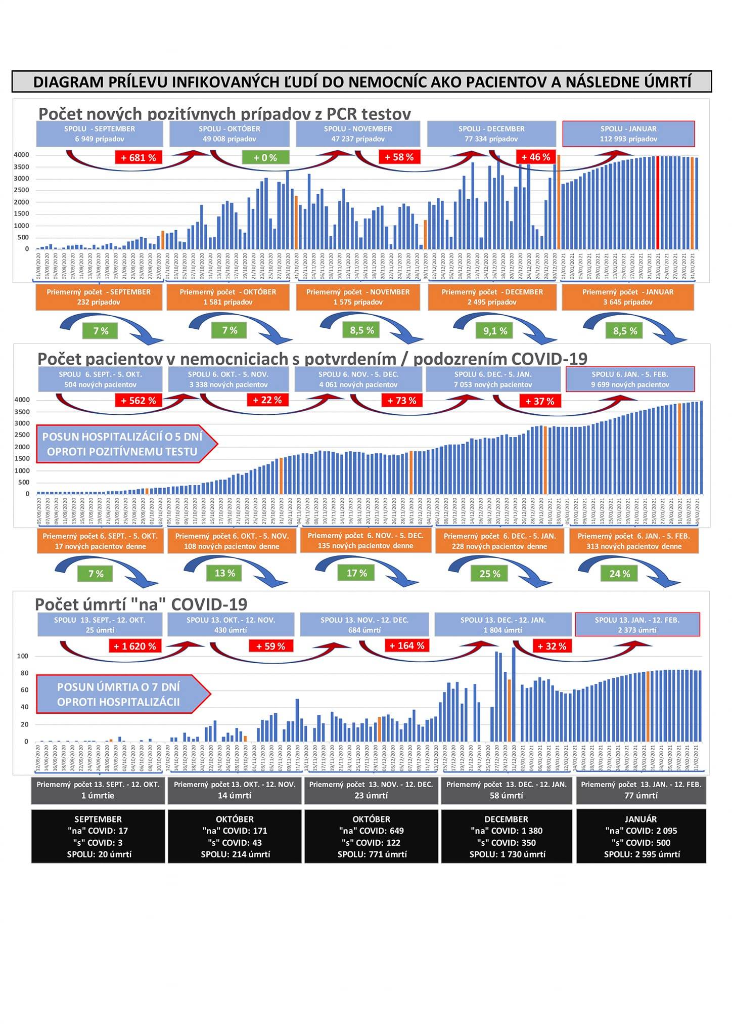 V januári môže byť do nemocníc prijatých až 9 000 pacientov a úmrtí s definíciou „na“ COVID-19 môže podľa predikcií byť až 2 000. Analytici z projektu Dáta bez pátosu vo svojej správe uvádzajú aj úmrtia spolu: „s“ a „na“ COVID-19. Tých bolo v decembri zaznamenaných 1 732 oproti 771 v novembri . Spolu za rok 2020 išlo o číslo 2840.