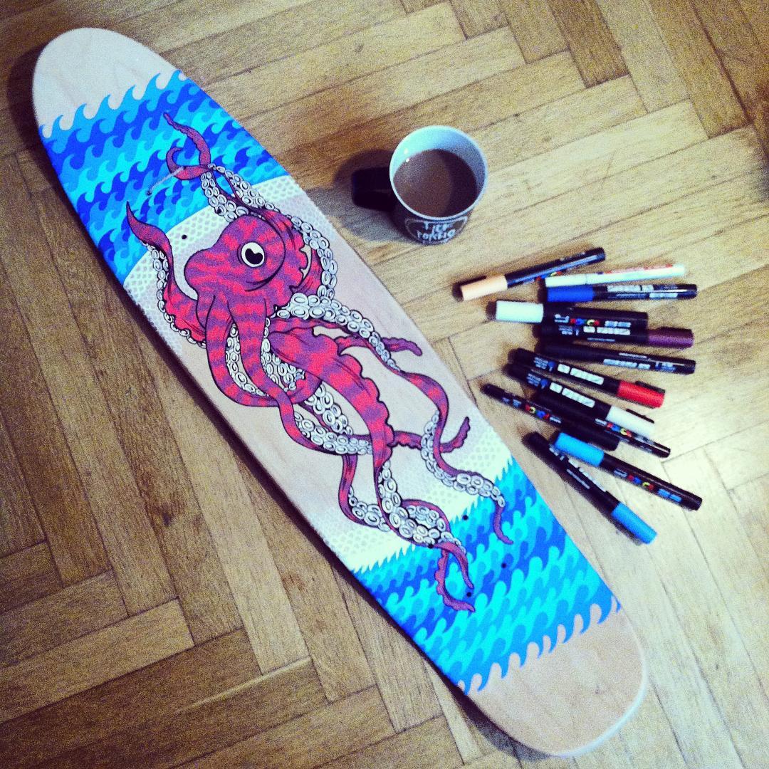 Okrem maľovania na tenisky sa venujem aj maľovaniu na skateboardy, surfy, snowboardy, oblečenie, čiapky, prilby, mizu fľašky… a naposledy som mala možnosť si vyskúšať maľovanie na ponožky na mojom workshope v Bratislave.